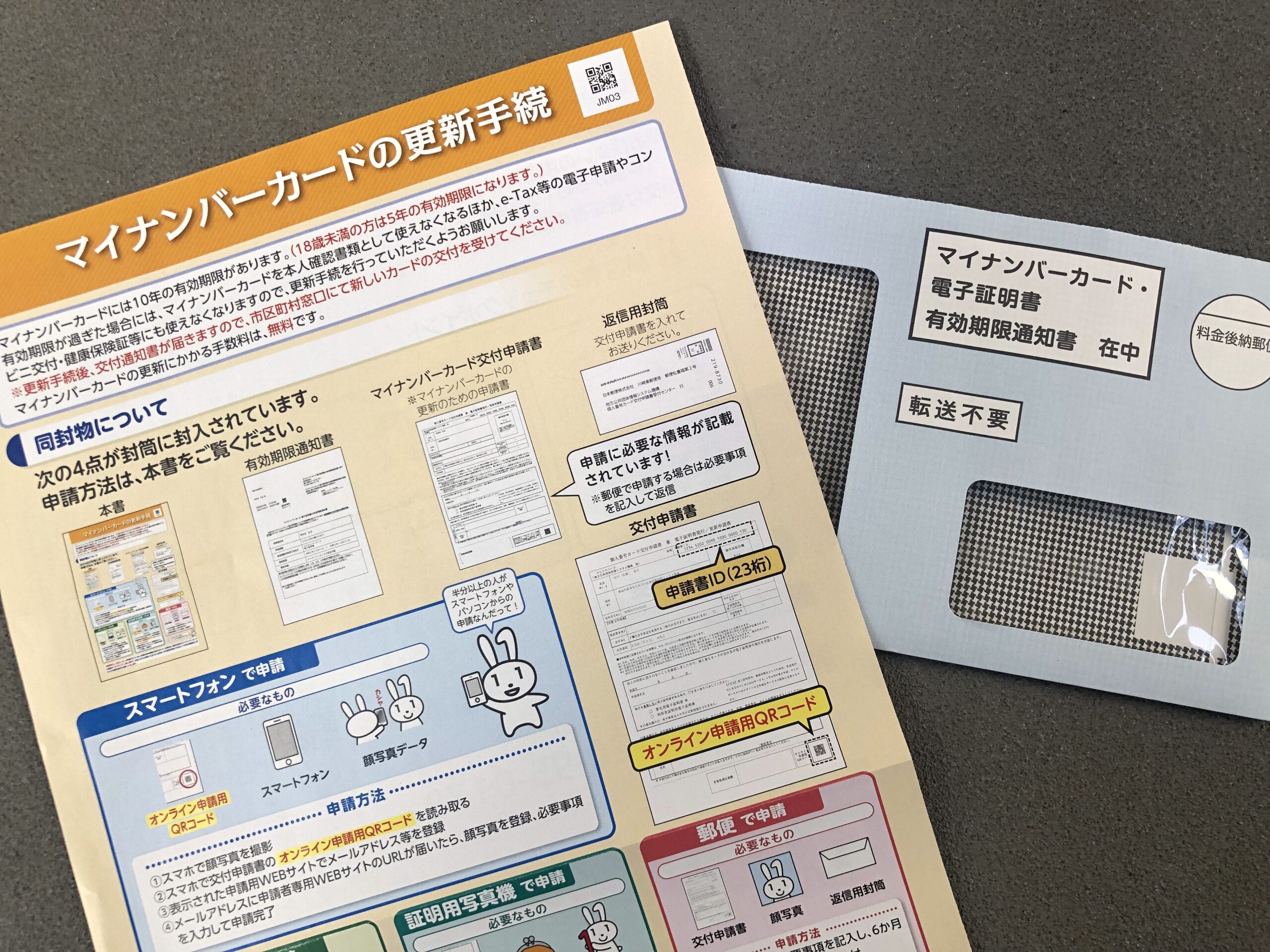 数日前、マイナンバーカード・電子証明書有効期限通知書が届きました。